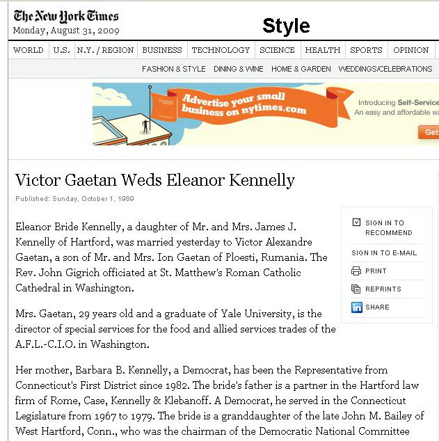 complet necunoscuti. La un moment dat am tresarit cind i s-a dat cuvintul unui participant al carui nume romanesc il stiam, la fel ca si biografia si unele din activitatile desfasurate. Pe parcursul interventiei Victor Gaetan, caci de el este vorba, a adus in discutie incompatibilitatea accesului la unele canale de informare si influenta guvernamentale, precum Departamentul de Stat a unor oameni care prin biografie si activitatile politico-ideologice duse pe durata sederii in tara de origine, recte Romania nu ar trebui sa prezinte incredere. Si l-a mentionat pe V. Tismaneanu. Nimeni nu l-a oprit, nimeni dintre participanti nu l-a criticat deschis si totul a continuat ca si cum nimic nu s-ar fi intimplat. Reactie nu tocmai surprinzatoare luind in considerare ca cel in cauza, altfel bine educat, cu un doctorat la Sorbona, era ginerele uneia dintre cele mai influente membre a Camerei Reprezentantilor si a establishmentului american reprezentind Partidul Democrat.