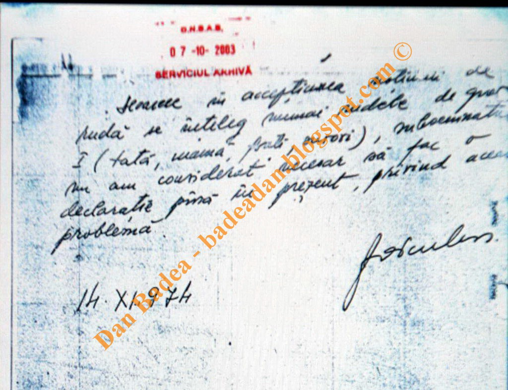 Sigur, nu aceste informaţii au fost reţinute de instanţă ca acţiuni de poliţie politică, pentru că nu au fost regăsite în notele informative ale lui Felix, ci o alta. Este vorba despre o notă din 1977 referitoare la un coleg (L.G.) şi care are următorul conţinut: „Semnalăm de asemenea tendinţa lui L.G. de a atrage spiritual şi material anumiţi cetăţeni români la fuga din ţară sau luarea de poziţie revoluţionară faţă de legile ţării noastre“. Turnătorul are toate motivele să se ia cu mâinile de păr pentru că i s-a tras doar de la atât.