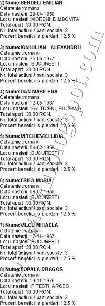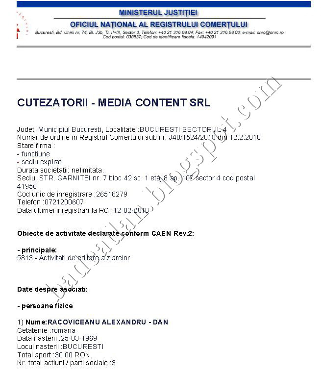Administratorul firmei se numeşte Daniela Căprăroiu.