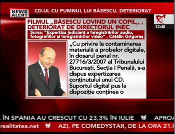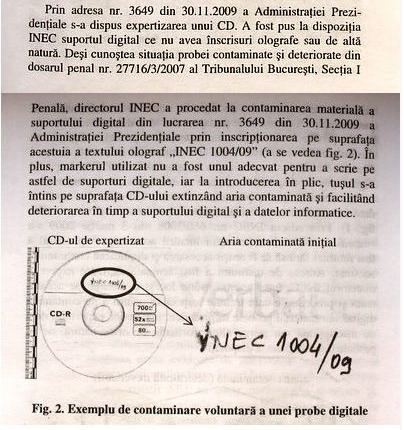 „Concluzia este ca in privinta CD-ului trimis de Administratia Prezidentiala pentru a se da avizul INEC din care sa se constate daca au avut loc interventii pe filmul prezentat cu gestul controvesat al presedintelui Basescu fata de un copil la mitingul dela Ploiesti, directorul INEC, care cunostea situatia din dosarul de la Tribunalul Bucuresti, a contaminat voluntar suportul digital. Care au fost motivele si daca a primit ordin sa faca asa ceva, nu se stie… A facut-o din greseala sau intentionat pentru a se evita concluziile nefavorabile ale unei expertize care ar fi putut rasturna rezultatele prezidentialelor?! Nu stim inca… Cert este ca aceasta contaminare a probei a avut loc”.