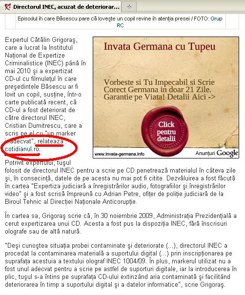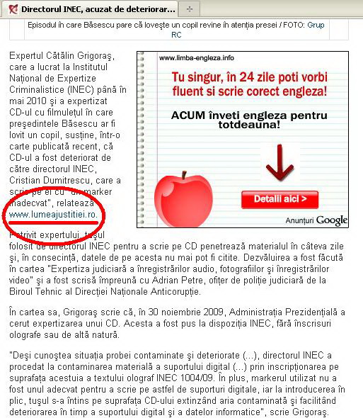 Pentru a-i răsplăti în plus, cu publicitate, pe autorii reali ai manipulării, adică pe Adina Anghelescu şi Răzvan Savaliuc, site-ul realitatea.net a modificat sursa materialului plasat astăzi pe internet. În loc de cotidianul.ro, aşa cum menţionaseră iniţial (foto stânga), au citat lumeajustiţiei.ro (foto dreapta). I-au dat Cezarului ce era al lui.
