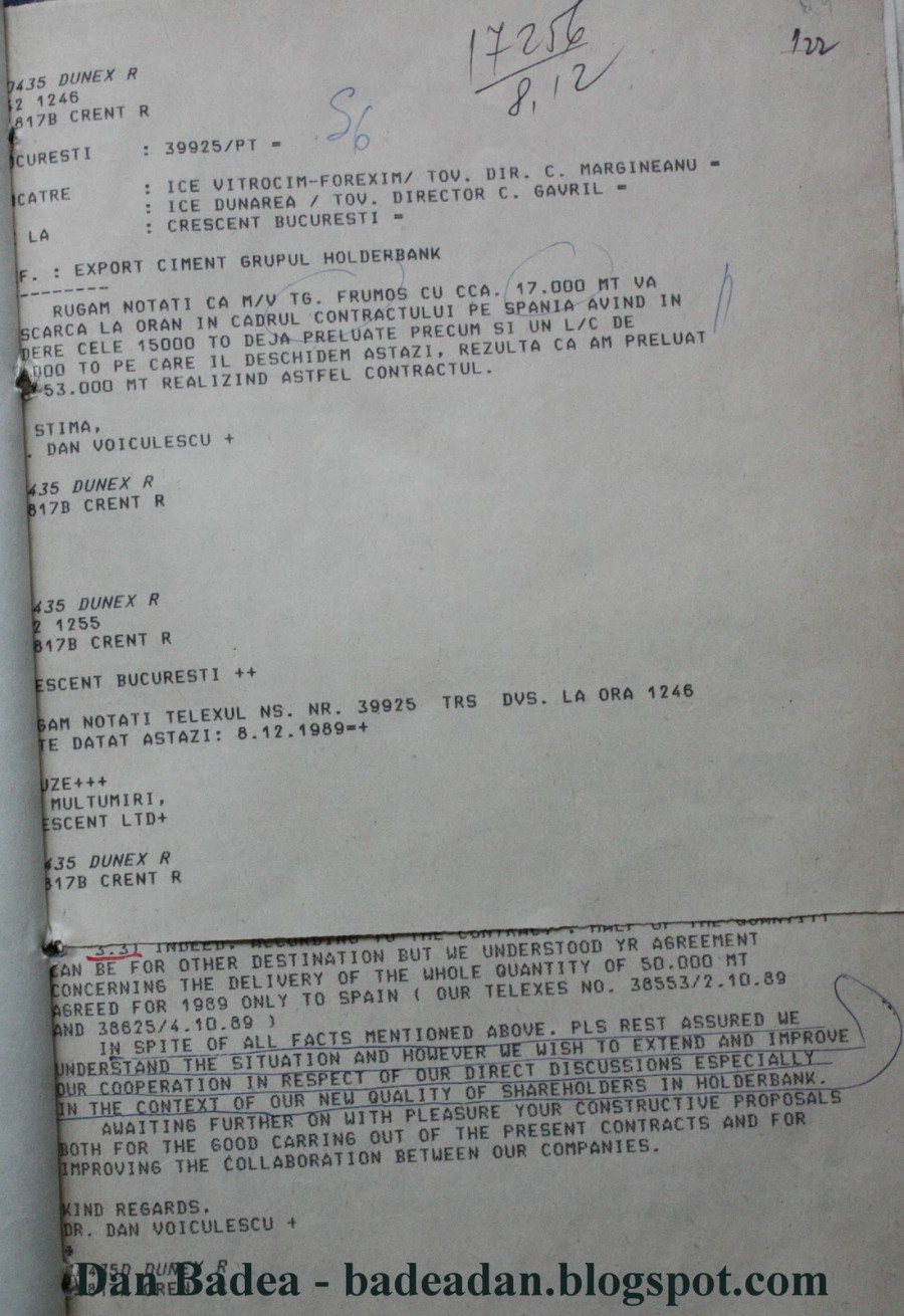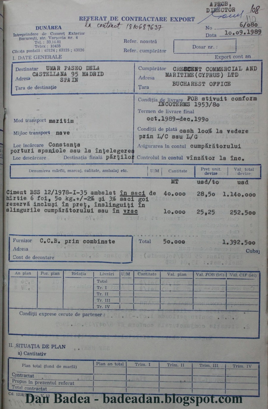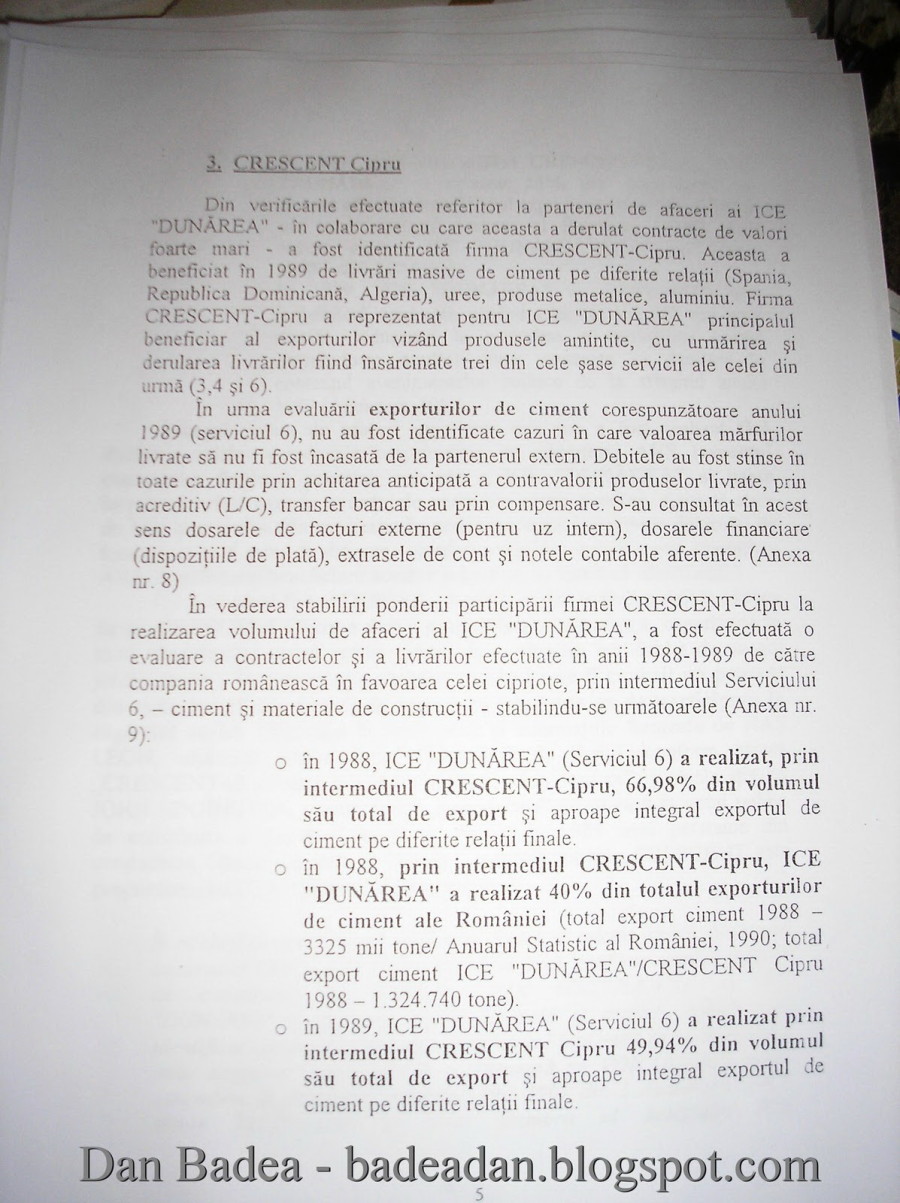 „– în 1988, ICE Dunărea (Serviciul 6) a realizat, prin intermediul Crescent Cipru, 66,98% din volumul său total de export şi aproape integral exportul de ciment pe diferite realţii finale”