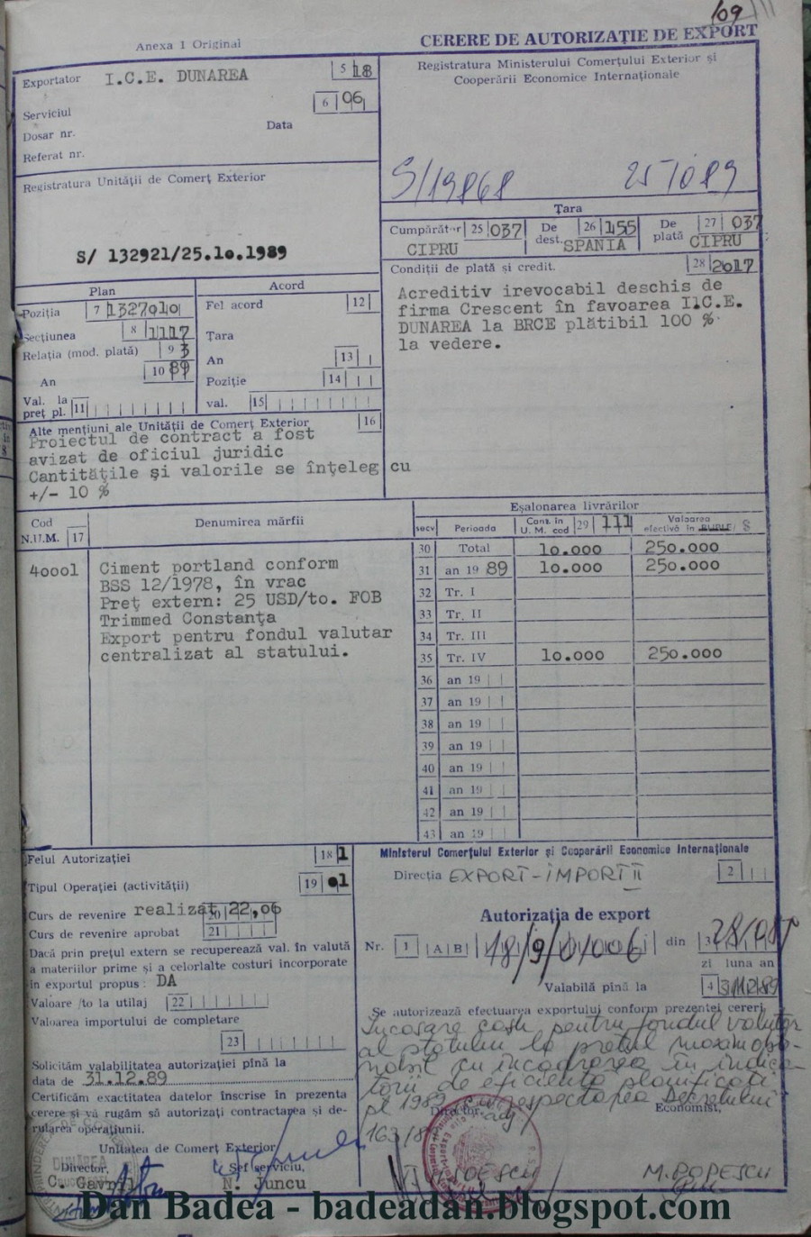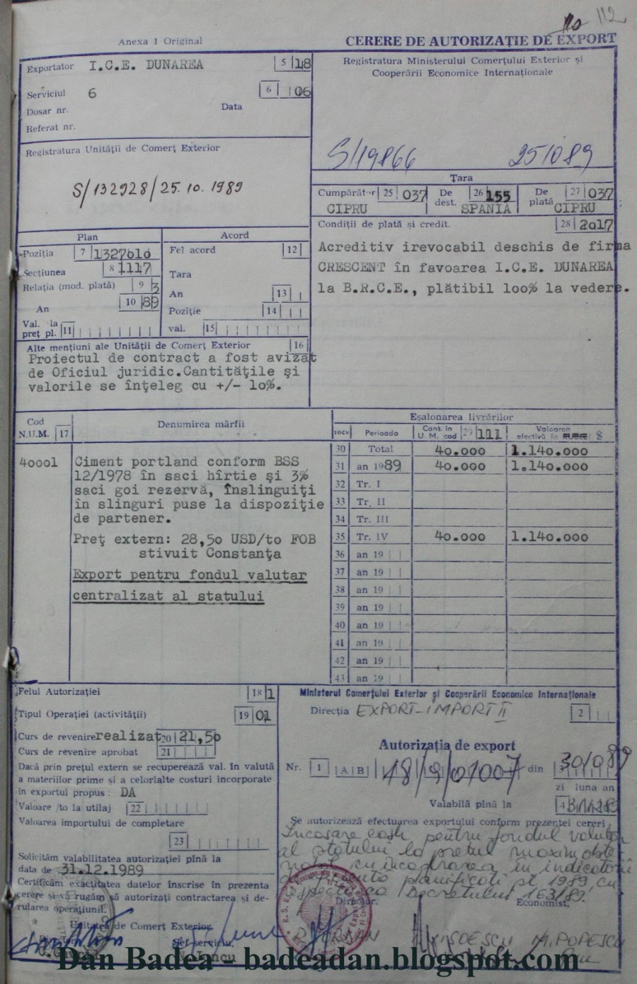 – în 1989, ICE Dunărea şi Crescent Cipru încheiaseră contracte privind exportul a 1.380 mii tone ciment, reducerea la o treime a cantităţilor livrate datorându-se anulării unor contracte în derulare în contextul evenimentelor din decembrie 1989„.