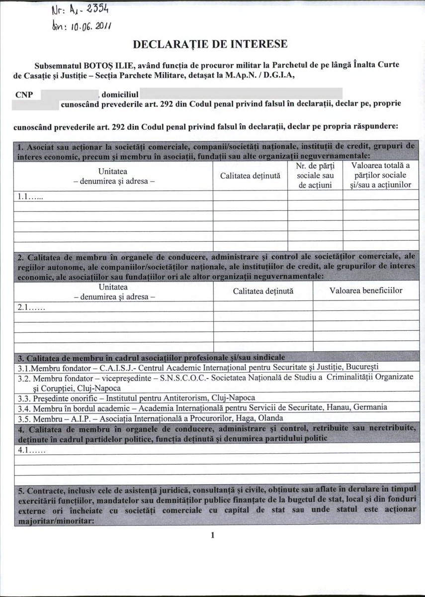 Fostul procuror general al României din perioada 2003-2006 și unul dintre groparii dosarelor lui Sorin Ovidiu Vîntu, retras din fruntea Parchetului General ca urmare a fugii lui Omar Hayssam, iar apoi reactivat și numit locțiitor al șefului Direcției Generale de Informații a Apărării, și-a completat în fals declarațiile de interese din ultimii ani, refuzând să declare contractele finanțate din fonduri externe și de la bugetul de stat încheiate de o fundație înființată de el în urmă cu patru ani.