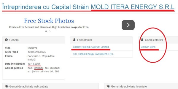 Societatea din Chisinau, detinuta prin offshorul cipriot Energy Holding (Cyprus)Limited si administrata de agentul rus Boris Golovin se numeste Intreprinderea cu Capital Strain MOLD ITERA ENERGY SRL: