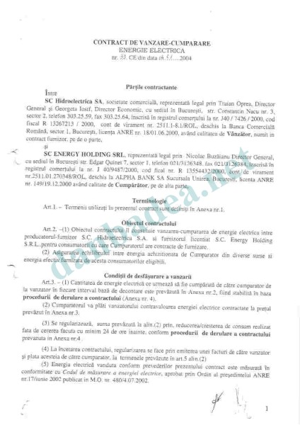 A fost favorizat Energy Holding prin acest document? Conform datelor de pana acum, Energy Holding a fost favorizata continuu in relatia cu Hidroelectrica, iar daca Buzaianu a fost dispus sa dea aproape 5 milioane de dolari numai pentru ca una dintre firmele sale (cea pentru care DNA dispune de dovezi!) sa-si deruleze contractul cu Hidroelectrica, este de presupus ca profitul firmei astfel protejate era de cel putin 10 ori mai mare, spaga fiind, de regula, 10% din castig.